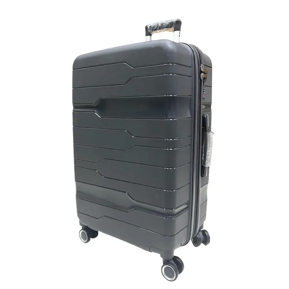 Produzida em polipropileno resistente, conta com estrutura reforçada, 4 rodas com giro 360°, puxador telescópico em alumínio e cadeado TSA integrado.